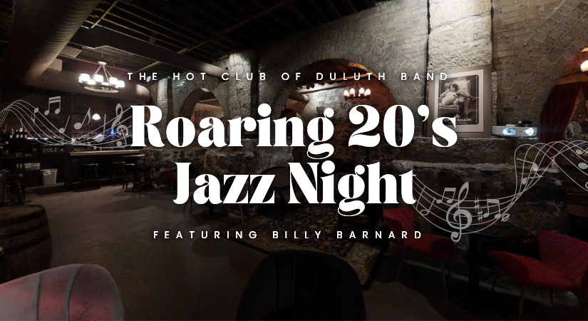 Join us for live Gatsby/1920’s Jazz music by The Hot Club of Duluth band, featuring Billy Barnard, live down in the Rathskeller. Music from 7:30pm-9:30pm Tuesday nights. No cover charge. Must be 21+ to enter. See you in the underground.